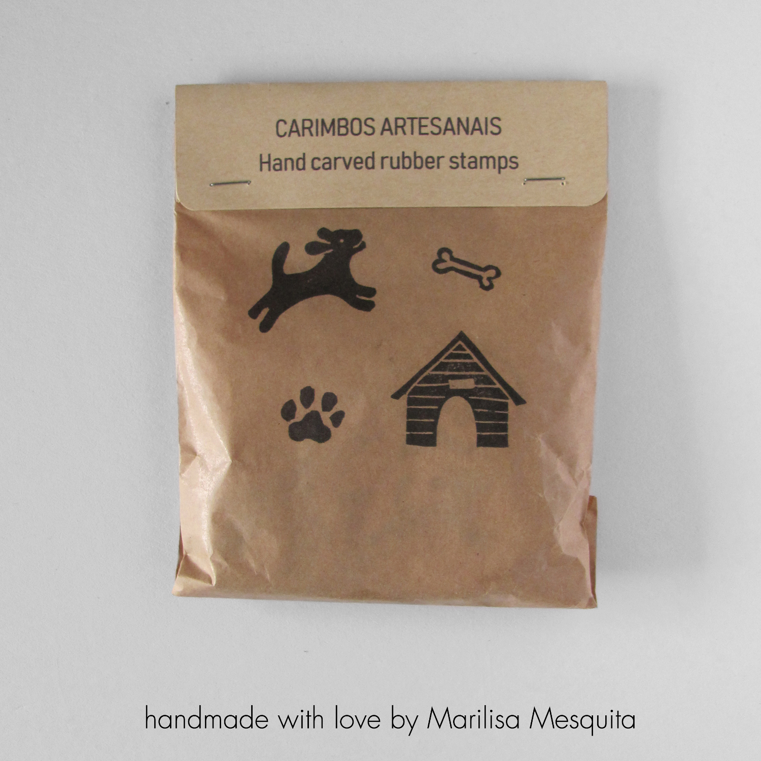 • Pacote artesanal com carimbos de borracha com motivos de cães