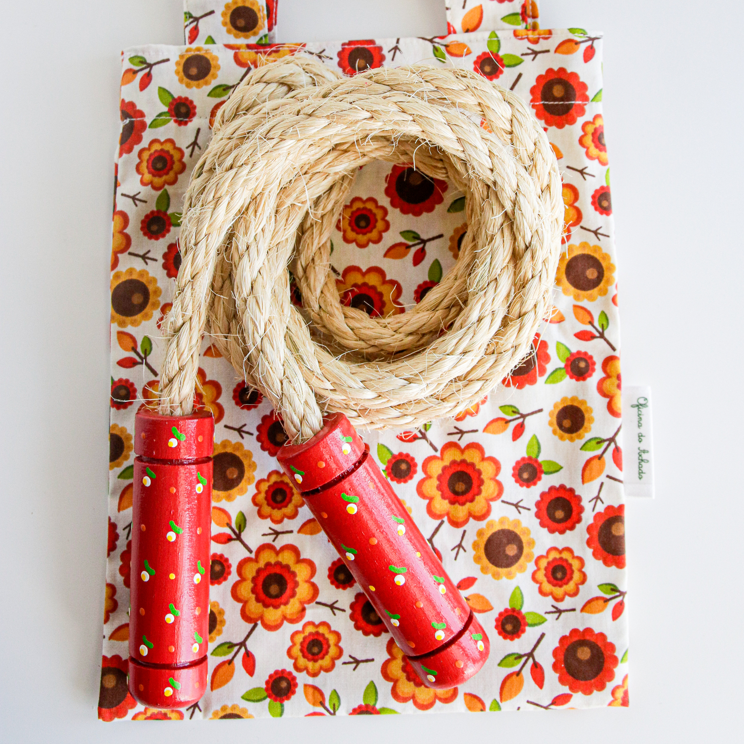 Corda de Saltar 16,00 € Desconto de %. Partilhar O produto encontra-se sem stock. Saltar à corda é uma atividade divertida que promove a sociabilidade e a cooperação quando jogada em grupo e um exercício físico muito completo! Melhora a resistência, coordenação motora, equilibrio, reflexos, domínio do corpo e orientação espacial. Com 2,20 metros, a corda de saltar pode ser usada individualmente ou em grupo. Inclui saco de transporte. Materiais: Corda de sisal com punhos em madeira pintados à mão e envernizados com produtos à base de água não tóxicos. Saco em algodão. Dimensões: 2,20 mts. Feito por: Oficina do Achado. Idade: +5 Produto artesanal, cores variam. Envie-nos um email para saber quais a cores disponíveis no momento da sua encomenda. Tags brinquedo tradicional Características